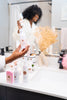 Apply 2-3 pumps of your wash in your hand or cloth. Lather soap onto your vulva (in between your vagina lips, throughout the folds)